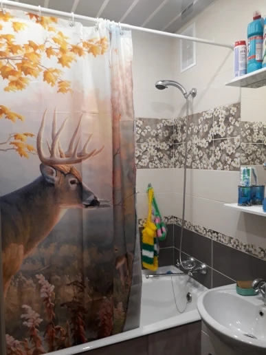 Шторы для душа с оленями и крючками, водонепроницаемые 3d занавески...