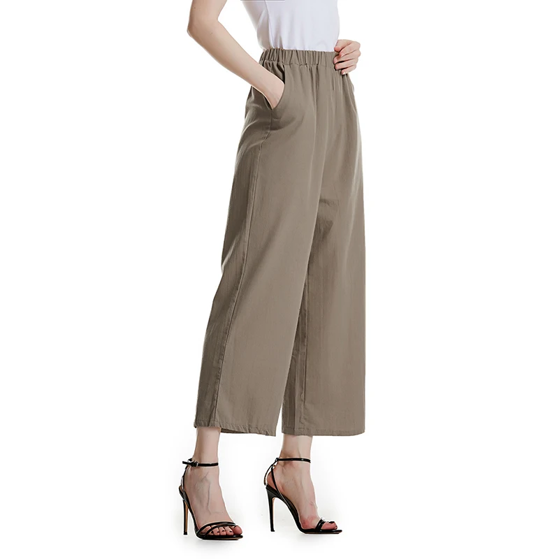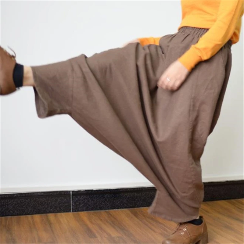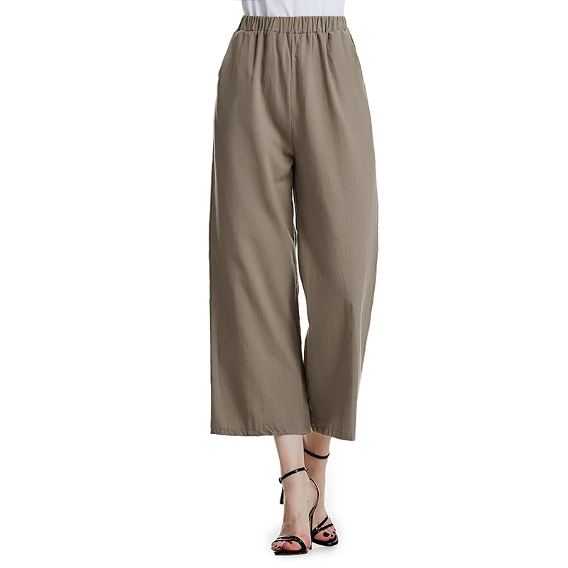 Женские шаровары, брюки Boho со средней талией, Женские однотонные брюки в клетку, мешковатые широкие повседневные Капри 2020