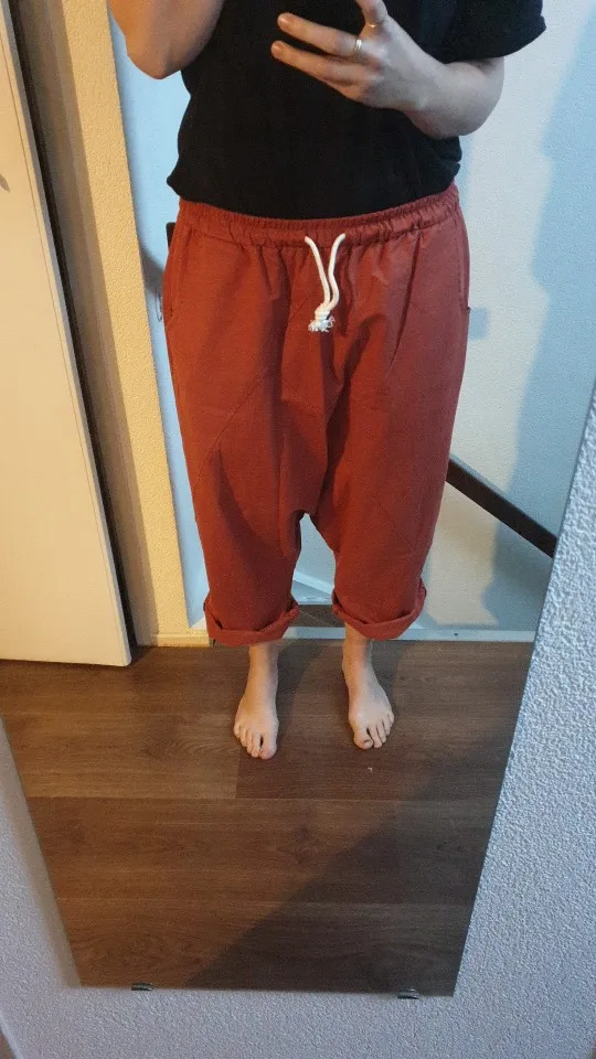 Очень странные штаны. Штанины снизу очень широкие, застежки не спасают ситуацию. Выкинула деньги, жаль