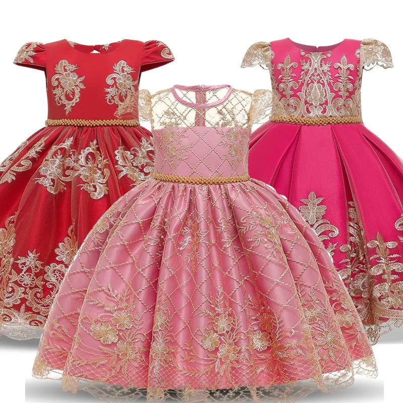 Платье для девочек Детские платья для свадебной вечеринки с жемчуго...