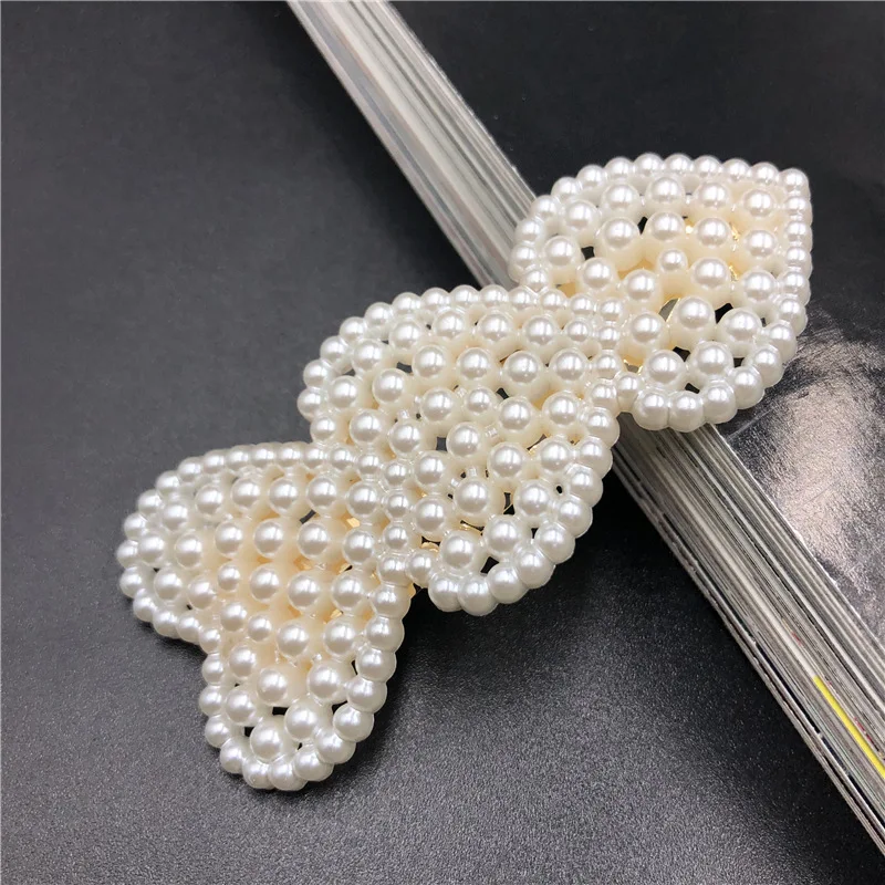 Заколка для волос с бантом и жемчугом Женская, простой зажим для во...