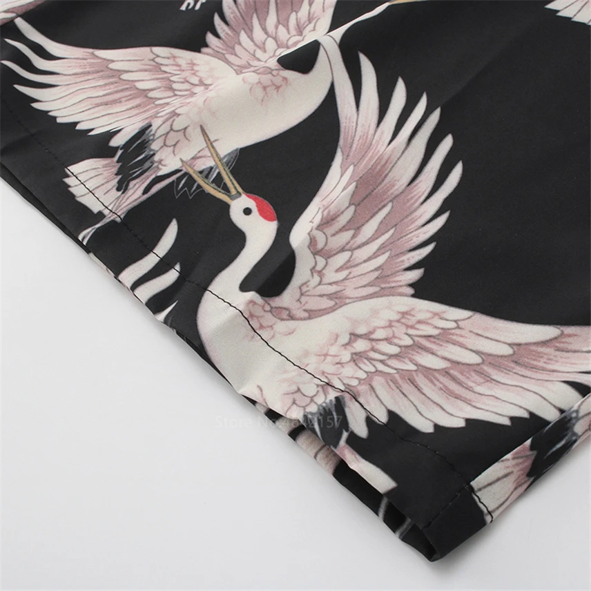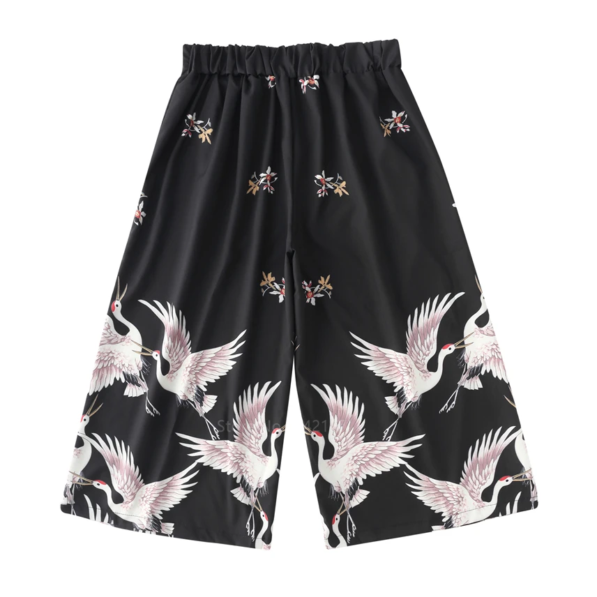 Брюки женские повседневные свободные с эластичным поясом, широкие штанины с завязкой, укороченные брюки палаццо с японским принтом в стиле укиё-э журавль, Харадзюку