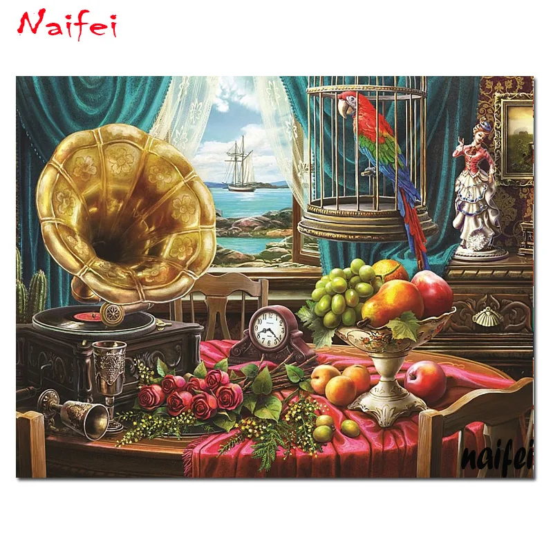 Полная алмазная живопись, натюрморт, роза, фрукты, попугай, вышивка крестиком, сделай сам, вышивка бисером, алмазная искусство, распродажа домашний декор ручной работы