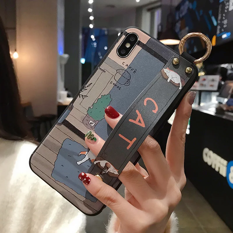Милый чехол для телефона с рисунком кота для iphone 12 mini 11 13 Pro XS MAX X XR 6S 7 8 plus, мягкие чехлы из ТПУ с ремешком на запястье
