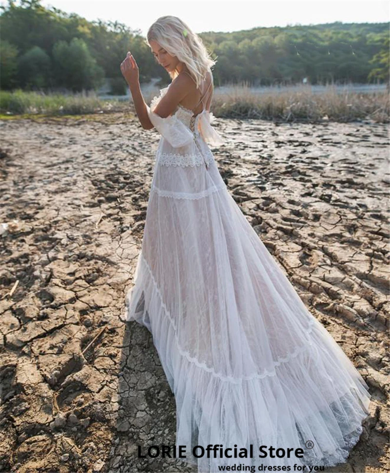 Богемные Свадебные платья LORIE, модель 2020 года, с открытыми плечами, ТРАПЕЦИЕВИДНОЕ кружевное платье с аппликацией, искусственное шнуровка, пляжные свадебные платья