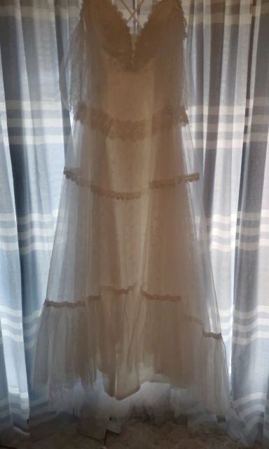 По цене действительно красивое платье. Уже имеется небольшая погрешность обработки, и тюль не является оборотнем (но все еще в порядке, только не так матовый и свободный, как с более дорогим платьем для невесты, среднего бизнеса)-но это также все, что я могу найти в этом вина. Подкладочная ткань красивая и хорошо садится, она аккуратная, а кружево также очень красивое. Это его деньги, абсолютная ценность и делает красивую фигуру :)