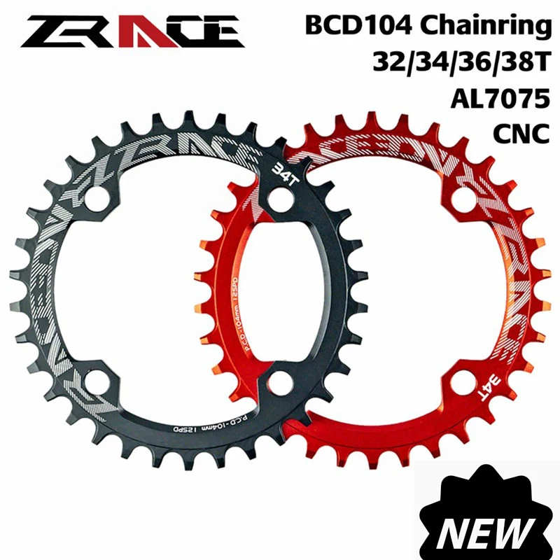 Новая звездочка цепи ZRACE 32T34T36T38T с узкими зубьями велосипедная кривошипная система Одиночная пластина 104BCD велосипедная кривошипная деталь для горного велосипеда