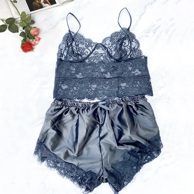 Женское нижнее белье, кружевные пижамы, комплект из 2 предметов, се...