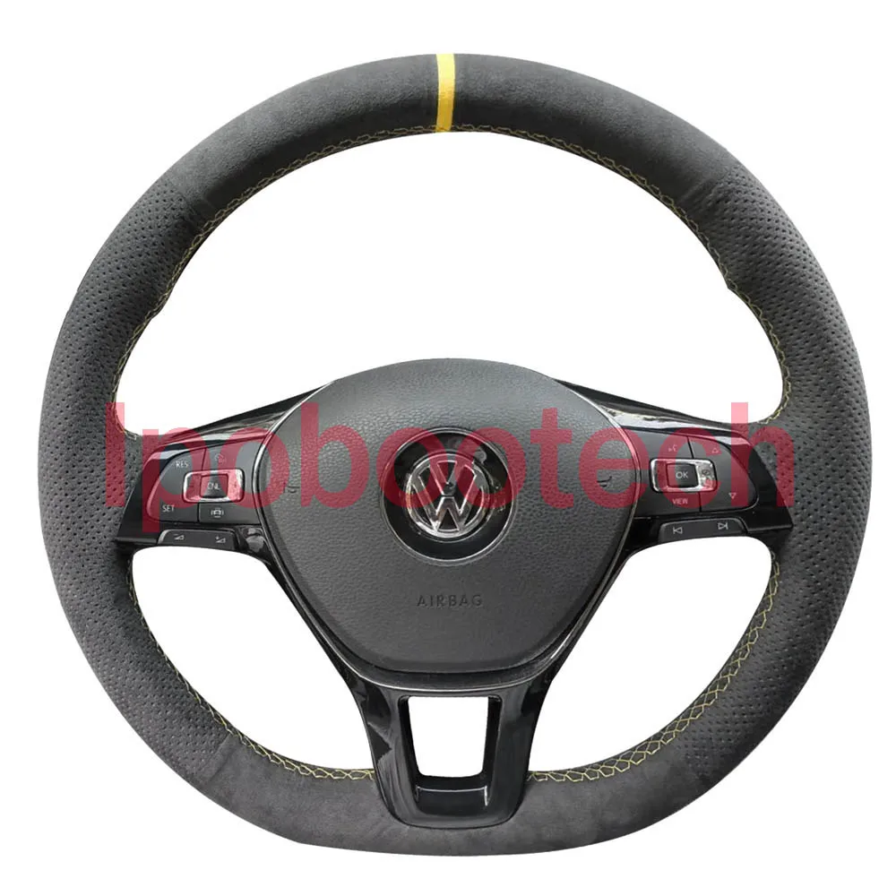 Чехол сделай сам на руль из черной замши, желтого цвета, Обложка для VolksWagen Golf 7 Mk7 New Polo Jetta Passat B8