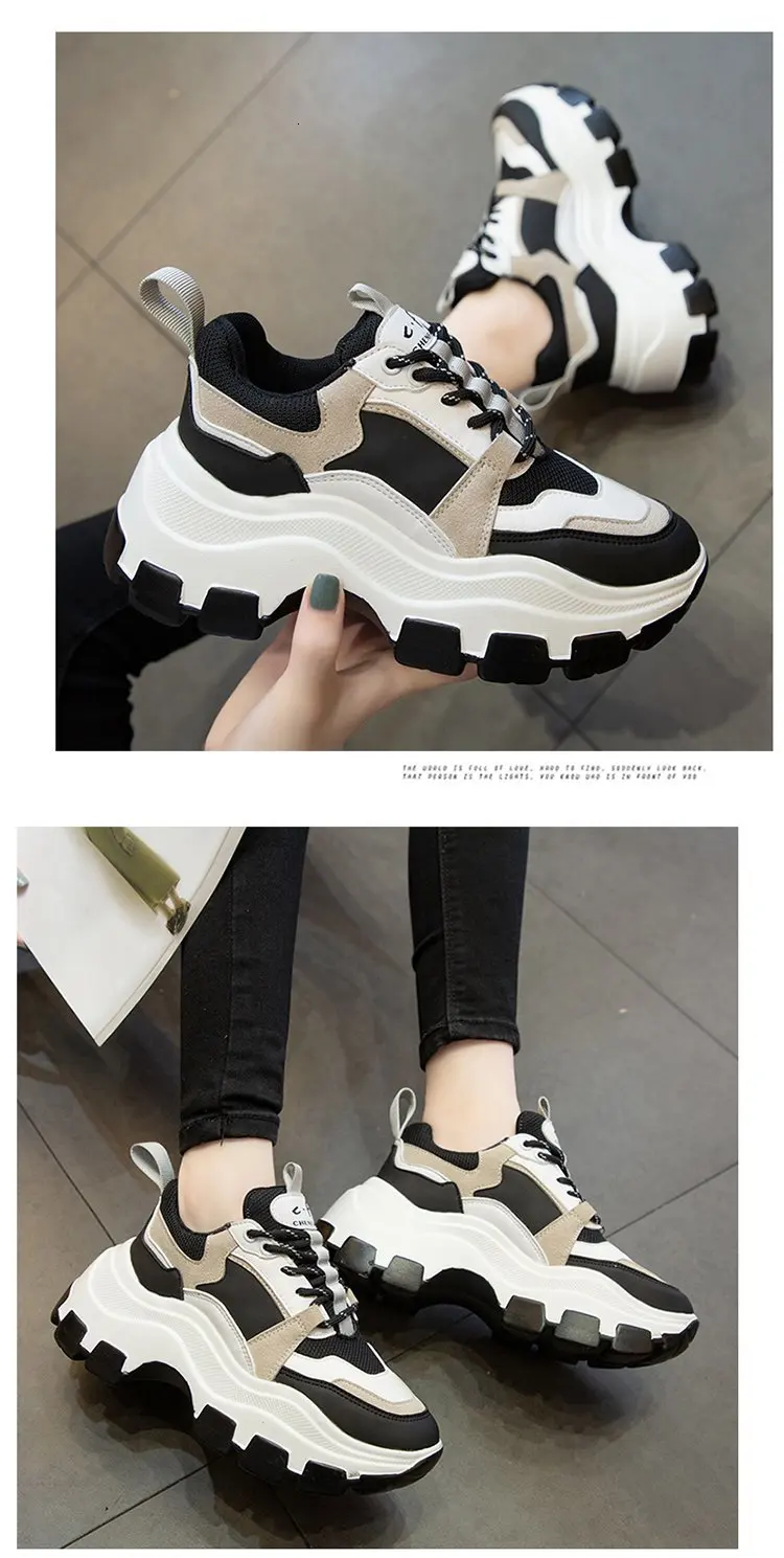 Женские массивные кроссовки, Вулканизированная подошва, повседневная обувь на платформе, толстая подошва, черные, белые, 7 см