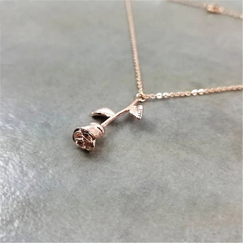 Колье в виде цветка розы для женщин из нержавеющей стали и с рисунком из мультфильма Красавица и Чудовище кулон ожерелья с подвесками в стиле Бохо ювелирные изделия подарок ко Дню Святого Валентина