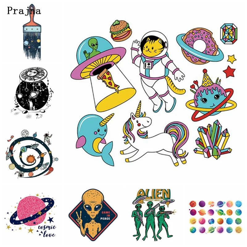 Космический инопланетянин НЛО передача для печатной одежды аксессуары планеты звезда теплопередача ткани полосы аппликация значок DIY Декор