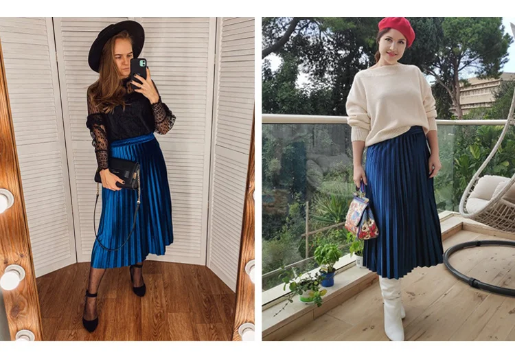 Бархатная плиссированная юбка женская с высокой талией для женщин с...