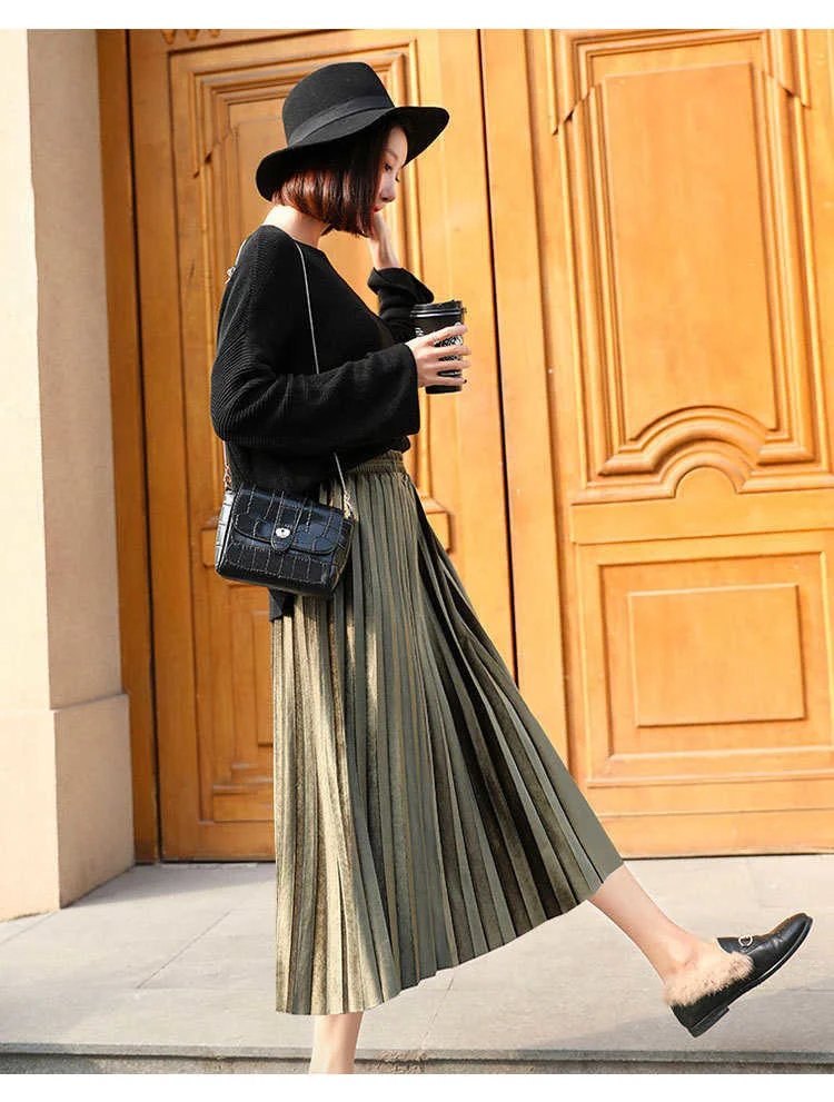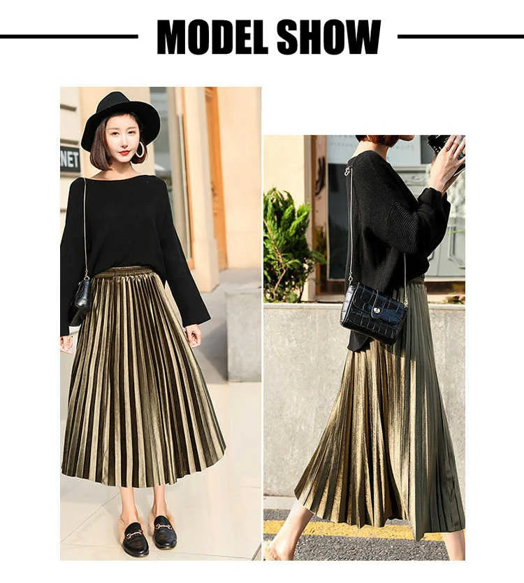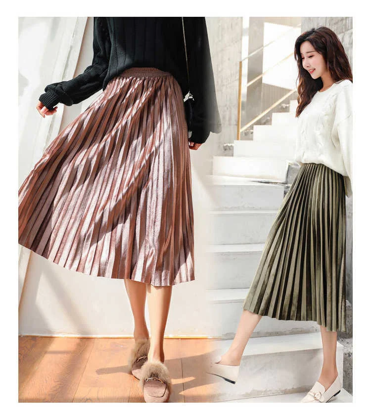 Золотистая бархатная плиссированная юбка, женские юбки, Новинка вес...