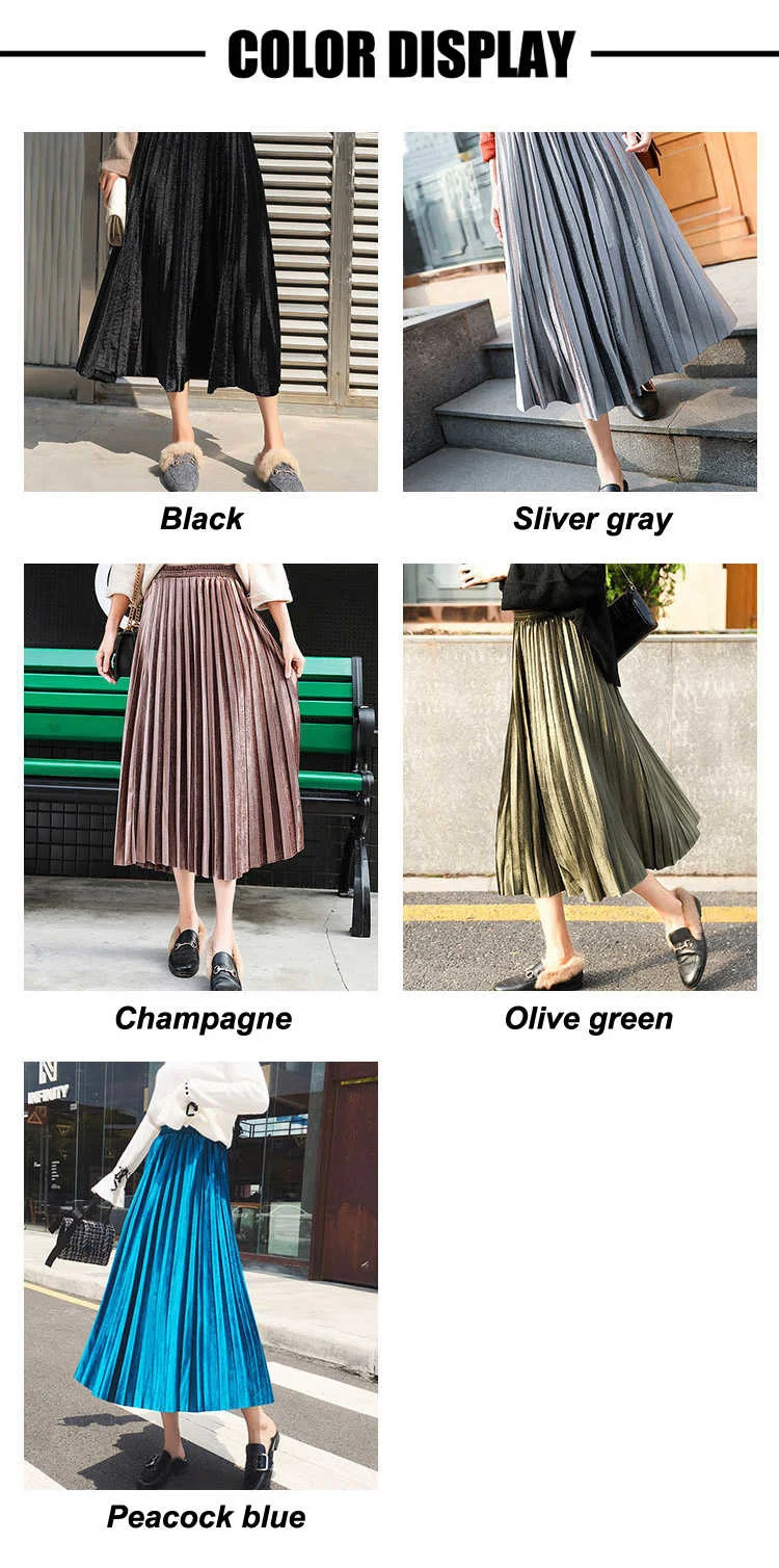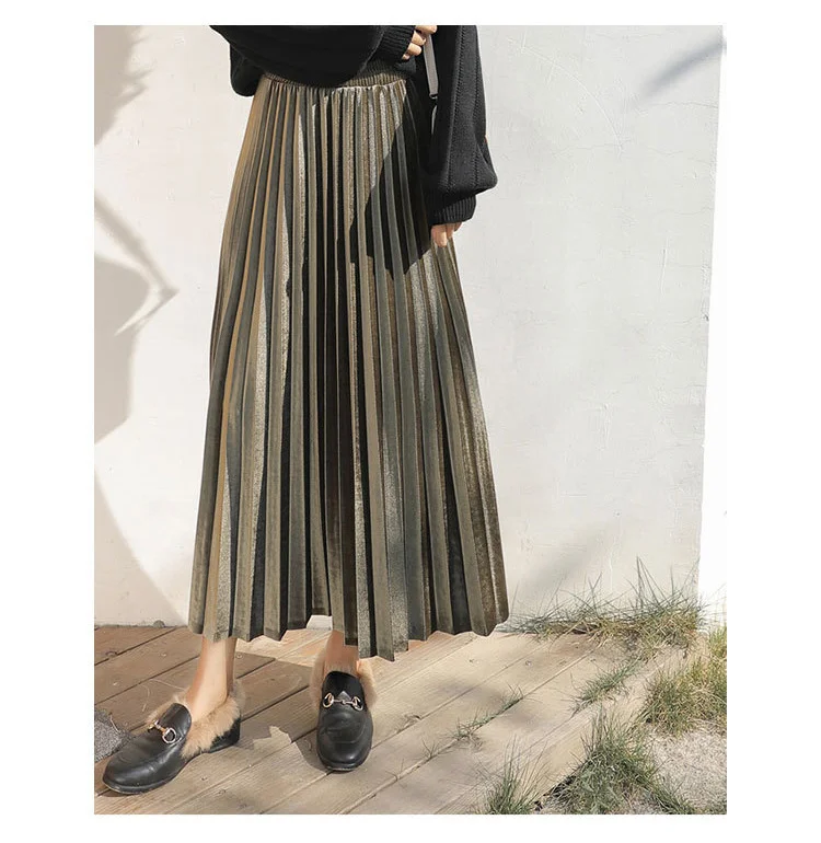 Повседневная бархатная юбка цвета шампанского, Женская винтажная элегантная Макси-юбка с высокой талией на осень и зиму, Женская облегающая плиссированная юбка А-силуэта