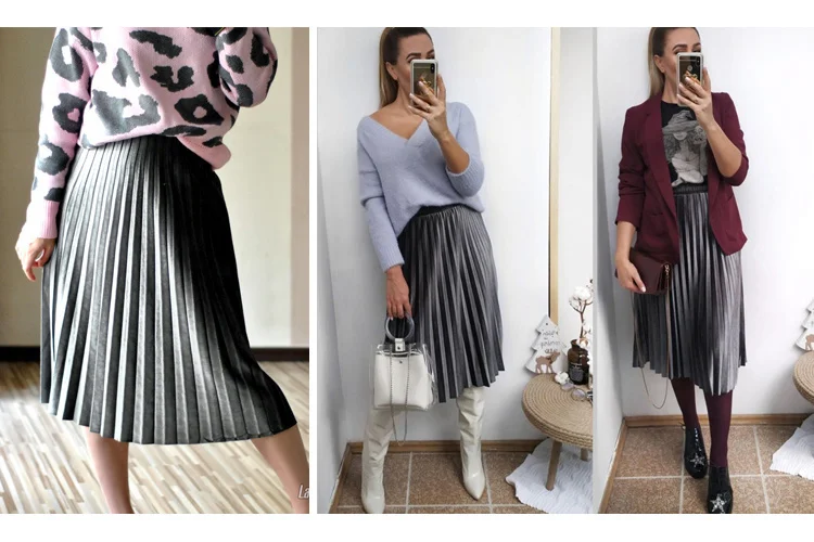 Плиссированная юбка женские осенние длинные винтажный серый фон в К...