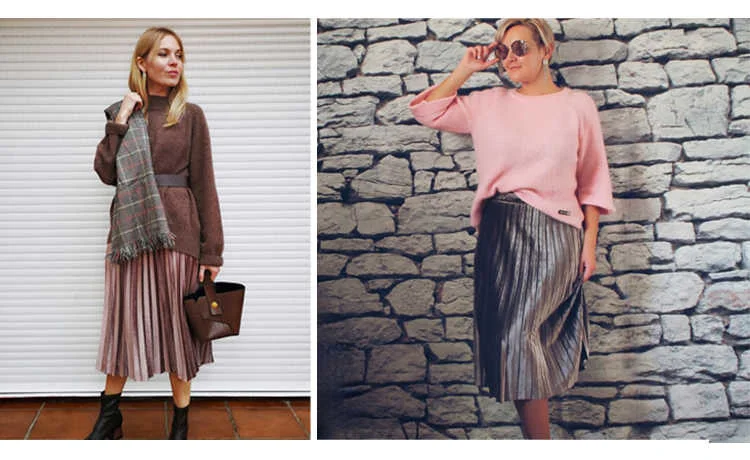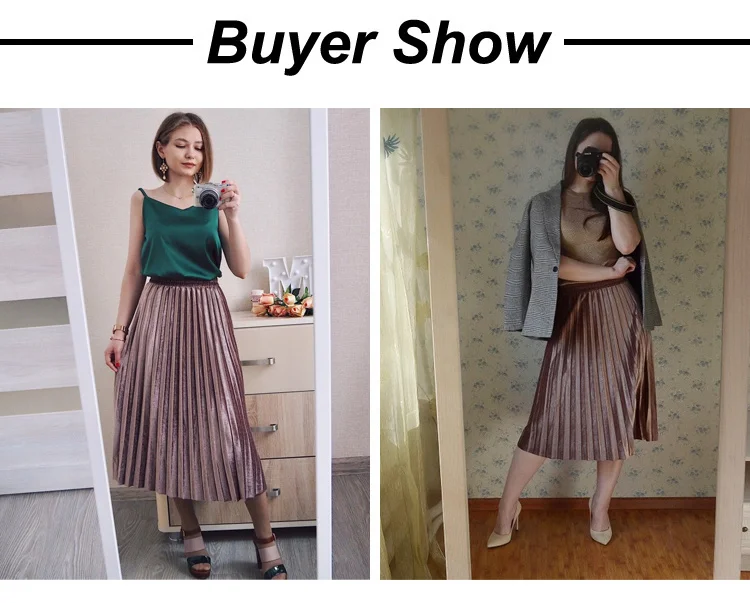 Женская плиссированная юбка, макси-юбка с металлическим блеском, По...