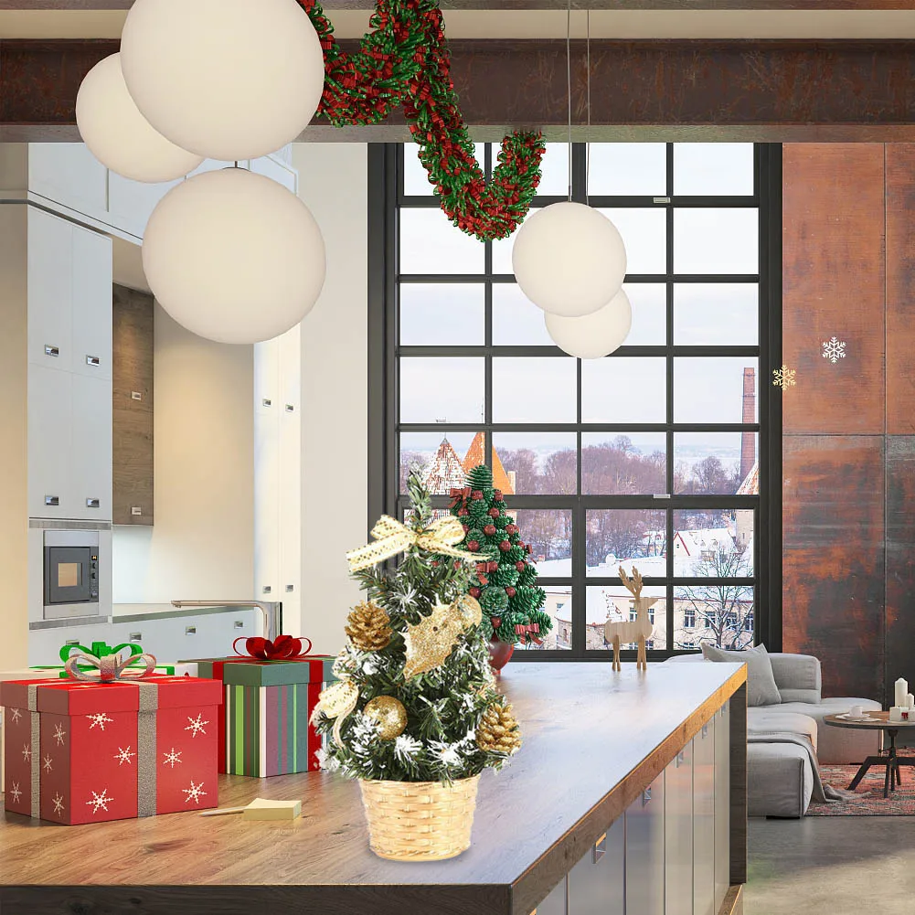 Мини искусственная Рождественская елка горшок блестящий шар отель кафе стол праздничный Декор