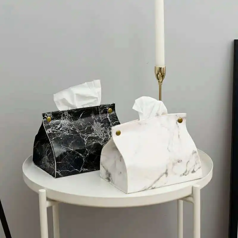Чехол для салфеток из белого мрамора, черный чехол для салфеток из искусственной кожи для домашнего офиса, декор для стола, держатель для салфеток, бумажные салфетки для полотенец