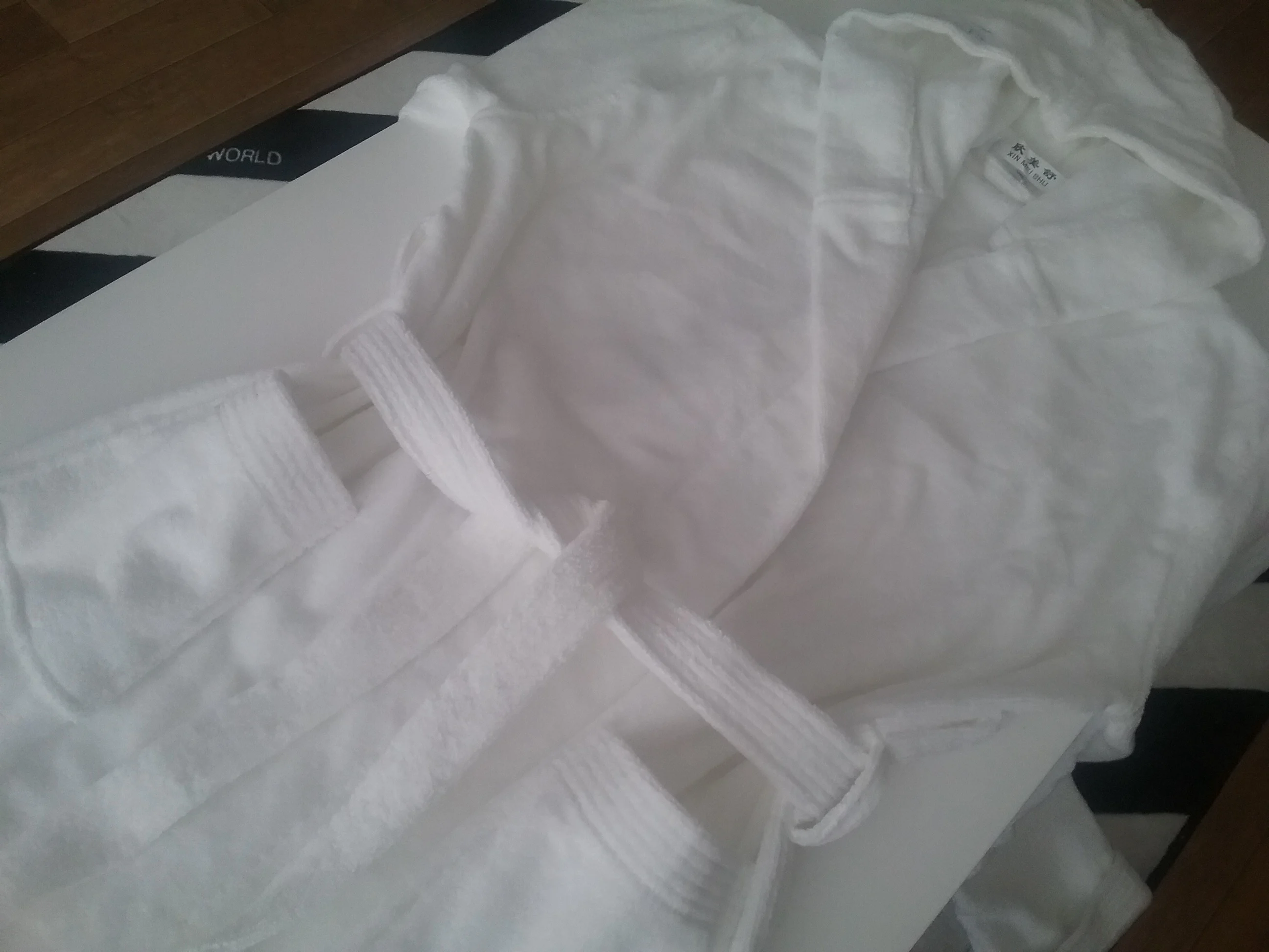 Доставка три недели. Просто супер. Мой рост 170 см, вес 55 кг. Боялась, что запах при ходьбе будет оголять ноги, но это не так. Качество отличное. Это не супер плотное полотенце. Средней плотности и тяжести. Не синтетика. 100% хлопок. Есть вешалка. Качественно. Большой капюшон. Нет пуговиц. Огромные карманы. Очень довольна!