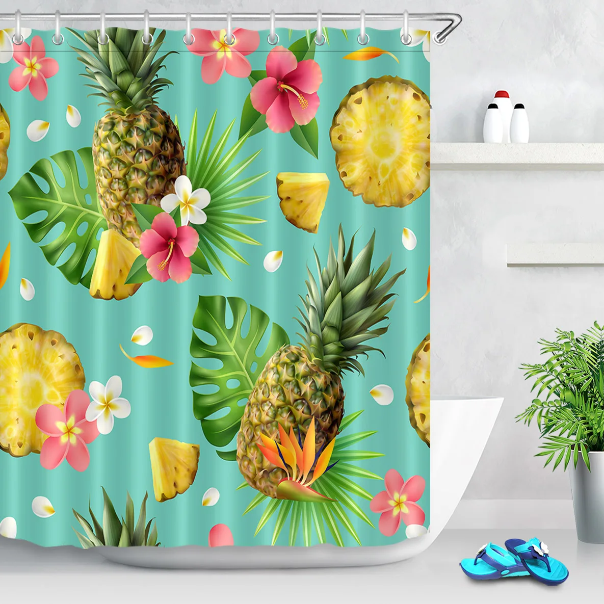 Занавески для душа из полиэстера, с тропическими фруктами, ананасами, зелеными листьями, водонепроницаемые тканевые занавески для ванной, экраны, коврик