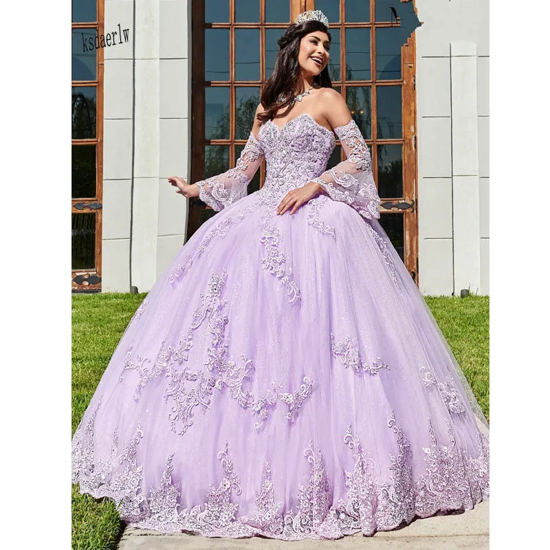 Популярные платья лавандового цвета с длинными рукавами, бальные платья, 2021, новая Кружевная аппликация, размера плюс, на шнуровке, в церковь, свадебная одежда, сладкое платье для выпускного вечера, 16