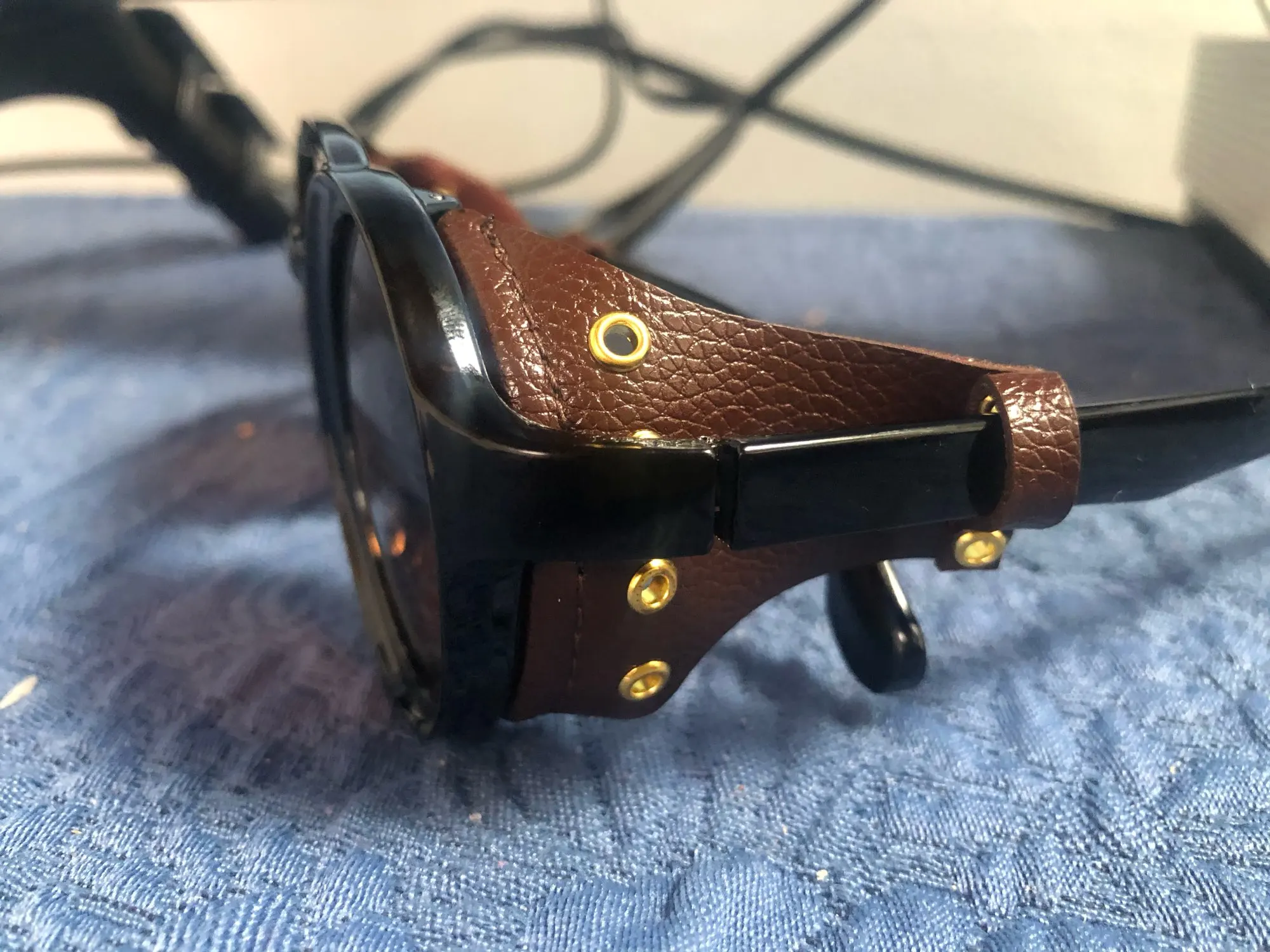 Материалы дешманские. Кожзам как-будто из кирзача делали. Позолоченные вставки только портят вид, из-за них очки выглядят по-женски.