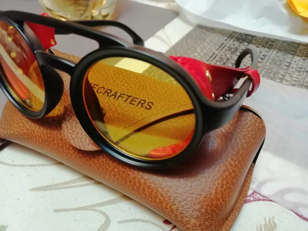 Продавец отправил быстро, пришли в Одессу за 2 недели Новой Почтой. упакованы хорошо, идут с футляром. Цвет красивый, жёлтые стекла приятны для глаз, вставка красная не кожаная (кож зам с бархатом). Лёгкие, приятные. Сами по себе узковатые, но может растянуться немного. Покупкой довольна