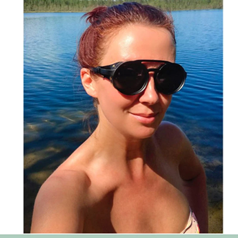 Солнцезащитные очки мужские и женские, винтажные, в стиле стимпанк, с кожаными боковыми экранами, круглые, 2021