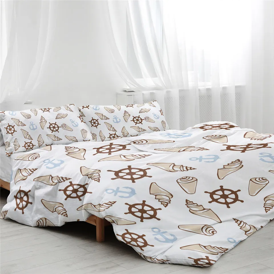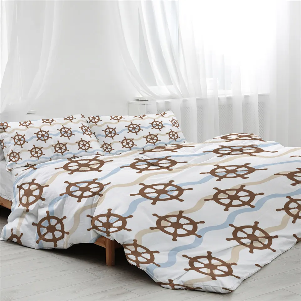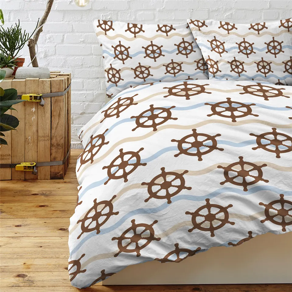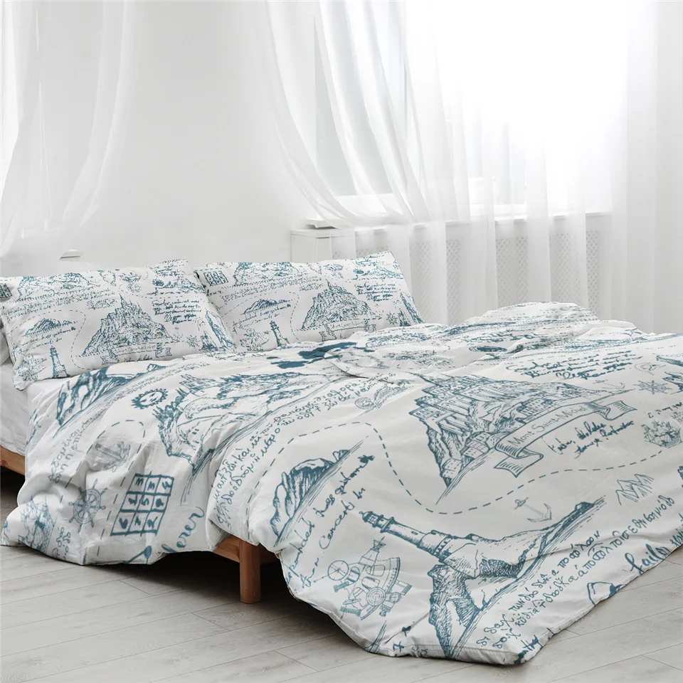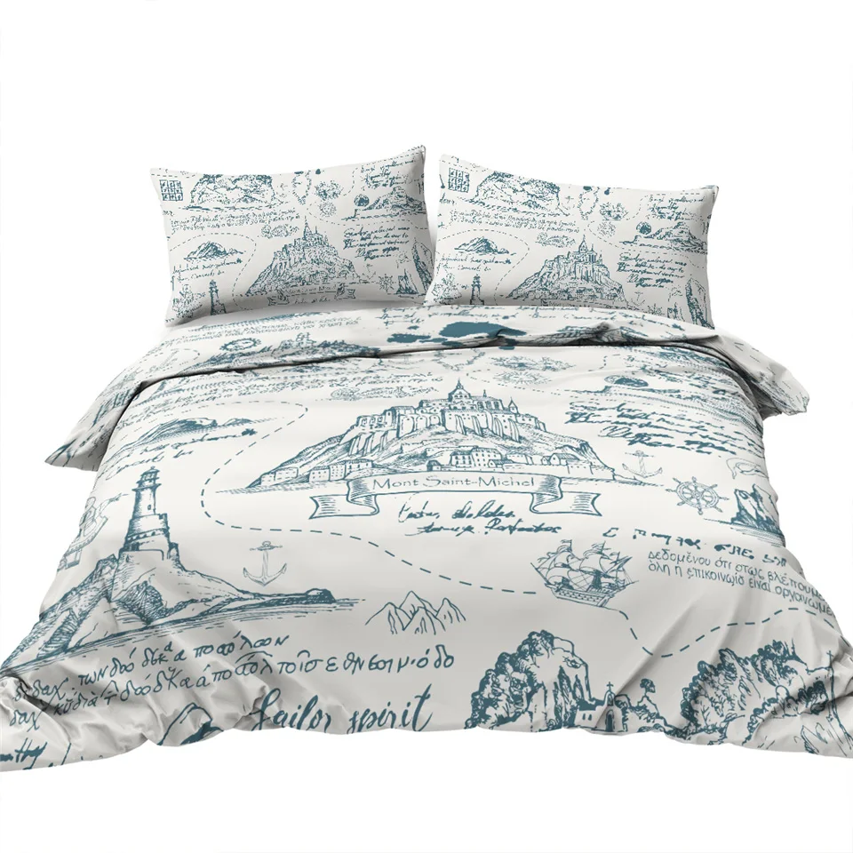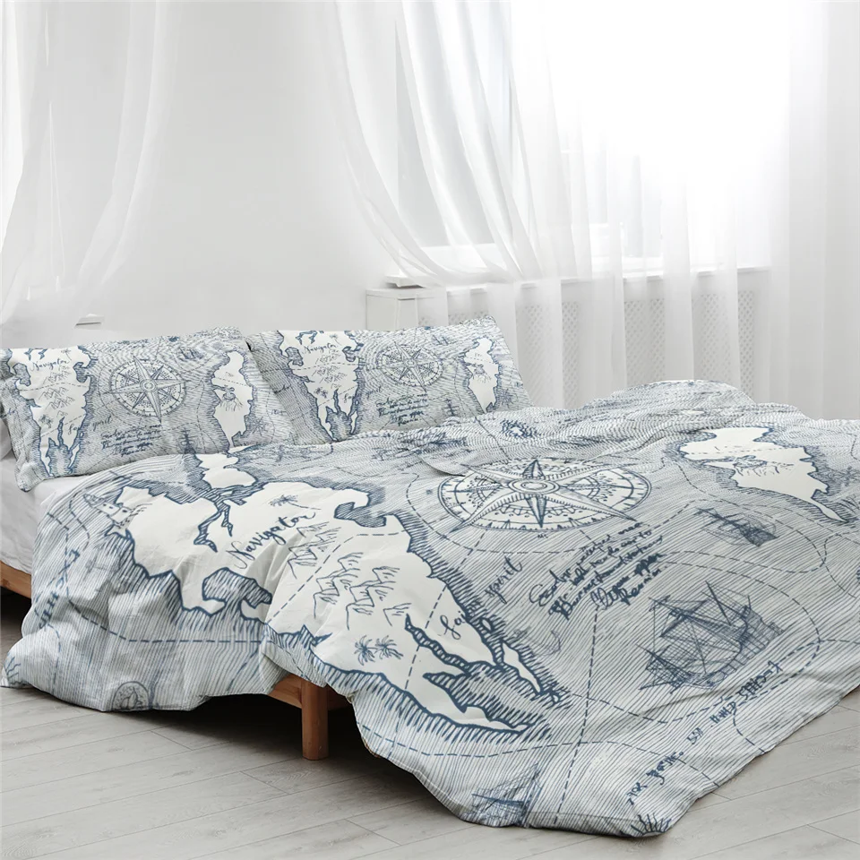 Комплект постельного белья BlessLiving, с компасом, приключениями, с яхтой, морским пододеяльником, с голубой картой мира, постельное белье для путешествий, домашний текстиль, 3 шт.