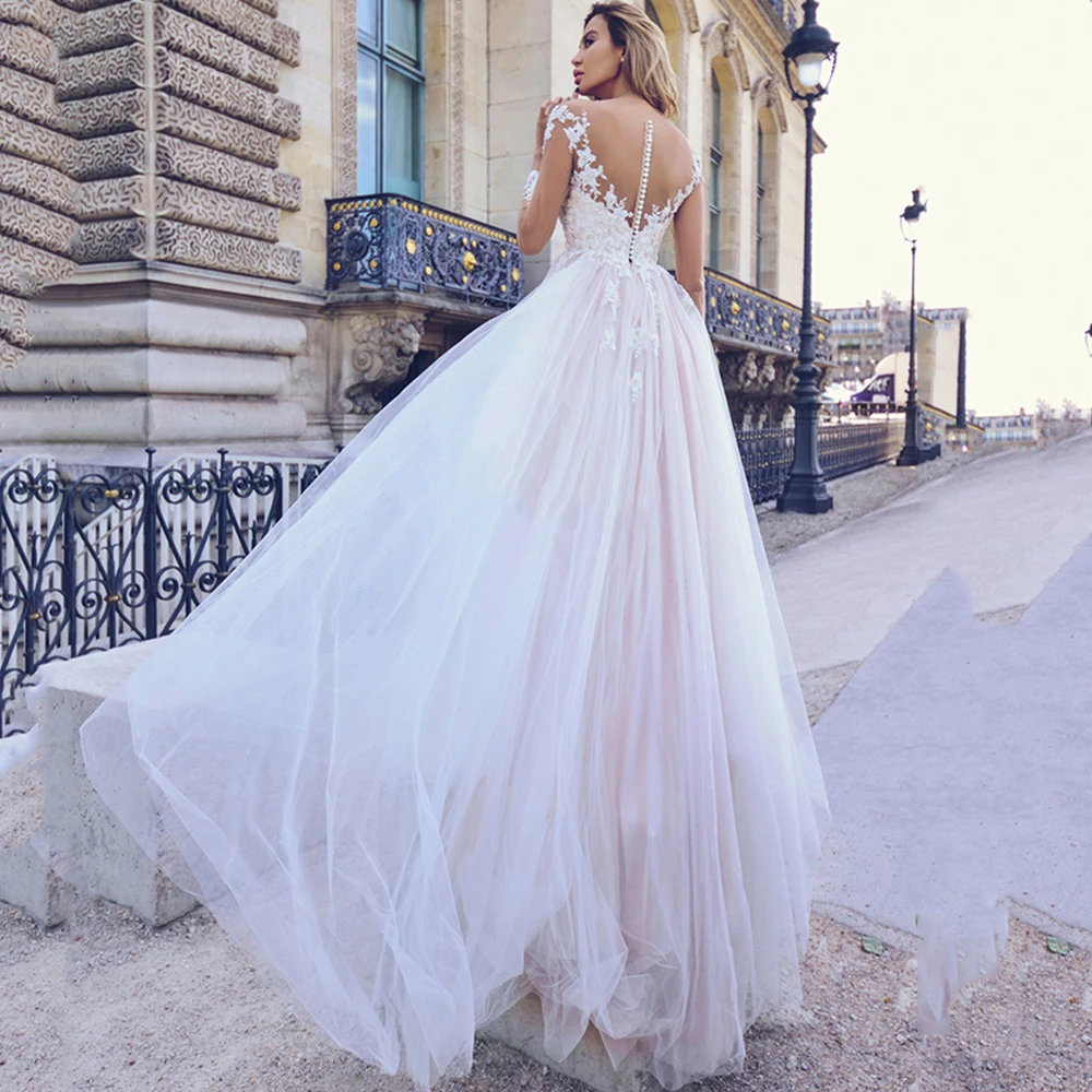 2021 иллюзионные Свадебные платья с глубоким круглым вырезом в стил...