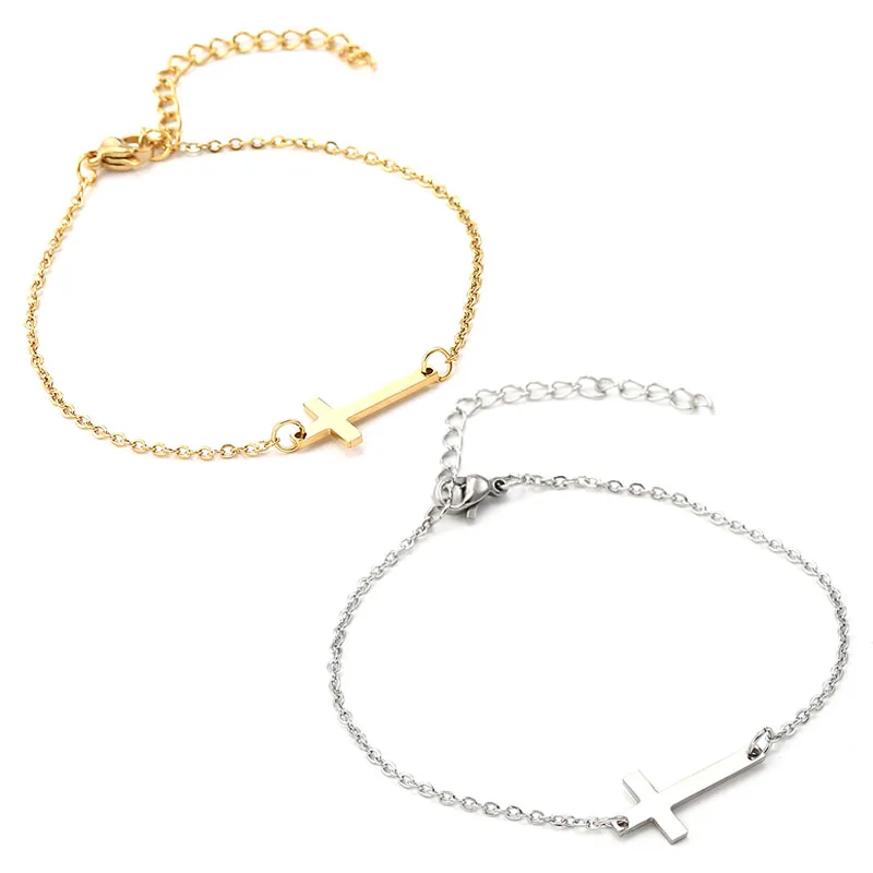Новинка 2022, женский браслет из нержавеющей стали с подвесками в виде креста, Модная бижутерия на День святого Валентина