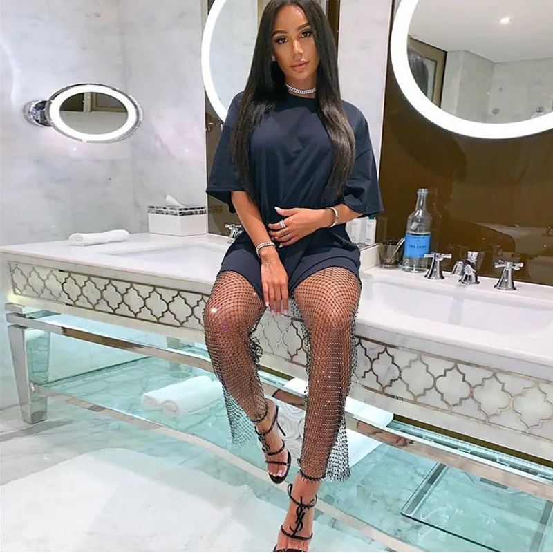 Женские сетчатые брюки с кристаллами и стразами, сексуальные летние...