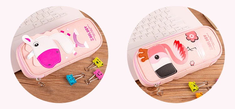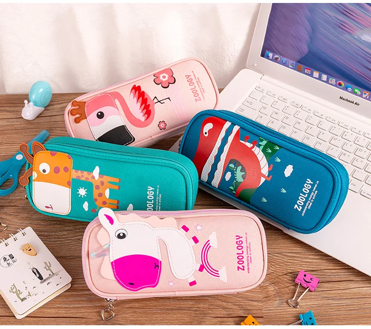 Пенал на молнии с милыми животными, единорогом, динозавром, фламинго