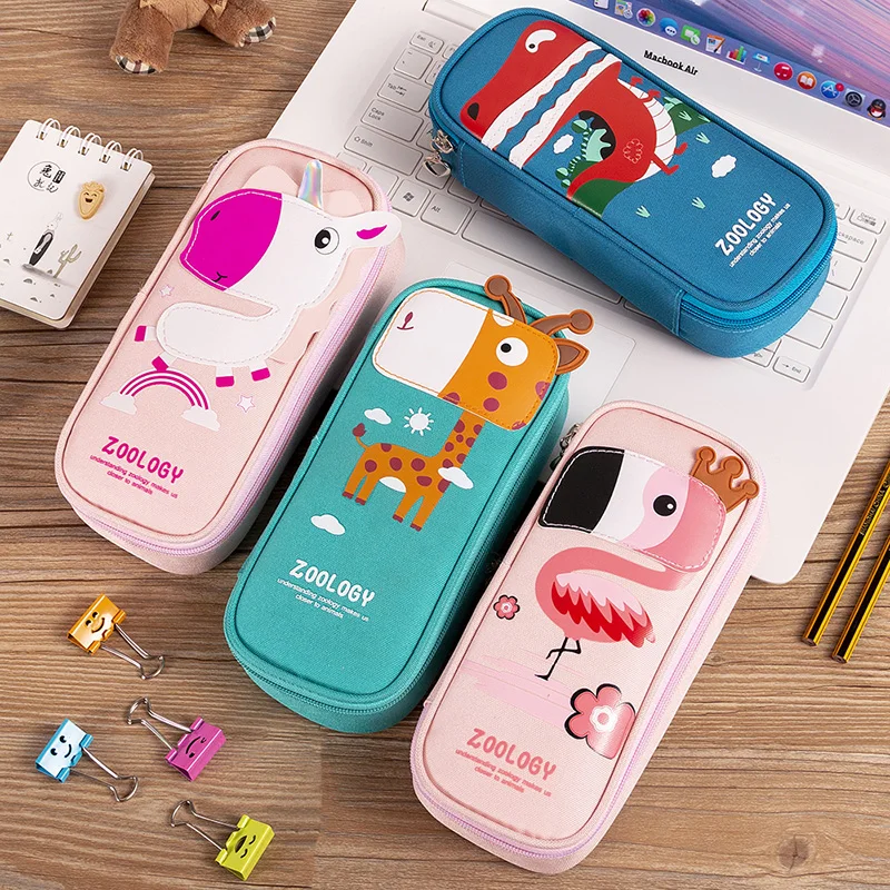 Чехол для карандашей, большой емкости, с изображением единорога, фламинго, животных, канцелярские принадлежности для школьников, студентов
