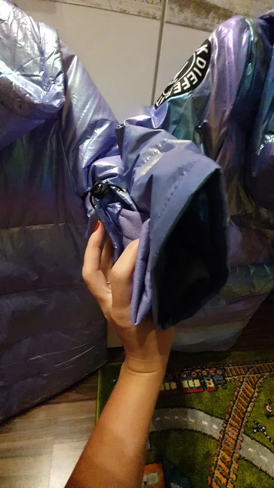 Пуховик супер! Есть две лямки,можно носить на спине,сняв рукава. Очень удобно в торговых центрах и супермаркетах. Друг сказал,что это киберпанк.