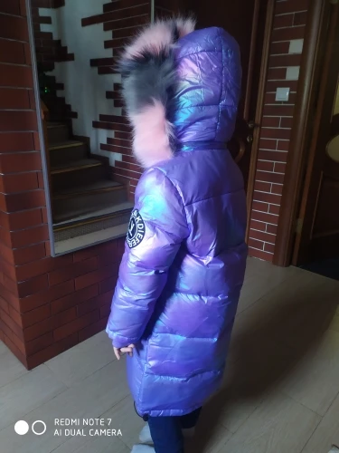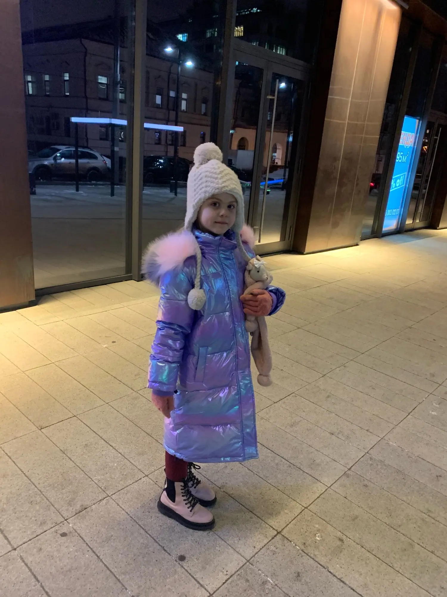 пуховик красивый, но 13 т на рост 128 большой, хотела что бы было оверзайс , но он так не смотрится, мех не узкий широкий , капюшон глубокий, буду укорачивать, ткань переливается всеми цветами радуги. посылка за 10 дней