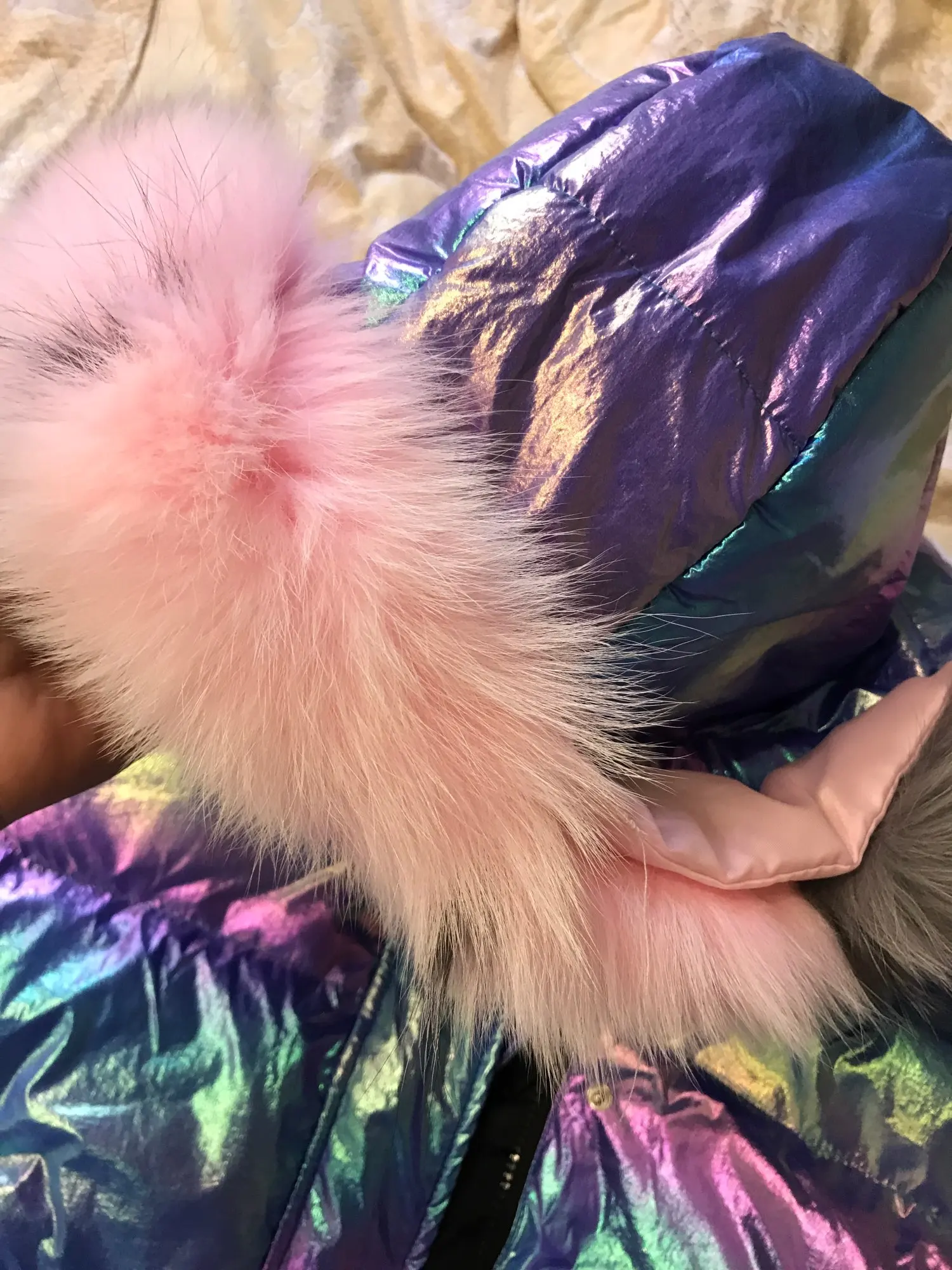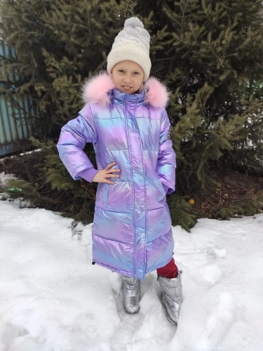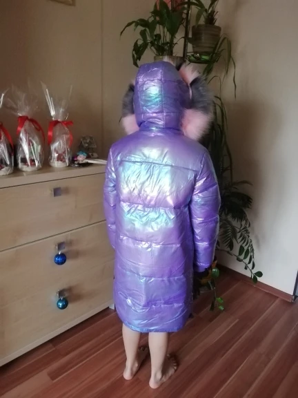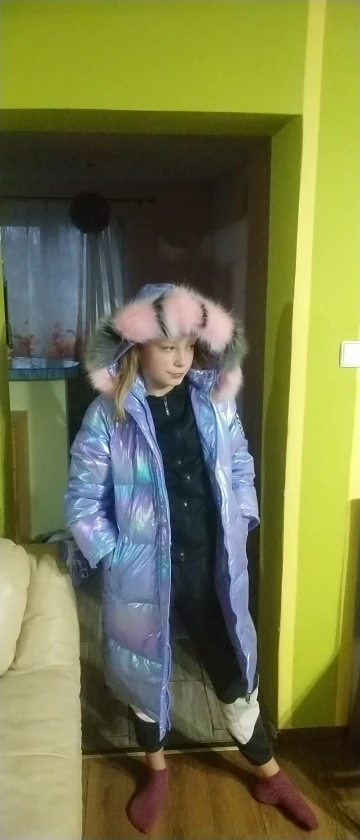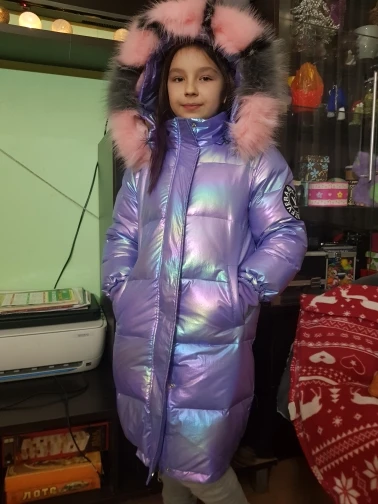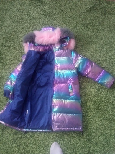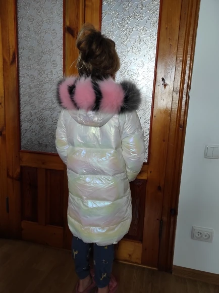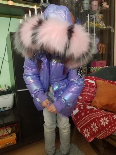 заказ пришел быстро. куртка вся переливается. на рост 146 взяли 160 ростовку. Отделка капюшона пушистая, но крепится к капюшону на пуговицы с ОЧЕНЬ БОЛЬШИМ расстоянием. Надо будет самостоятельно переделывать это безобразие. Замок также подлежит замене, очень низкого качества и только закрывается вверх, что для зимнего длинного пуховика, для ребенка не удобно.