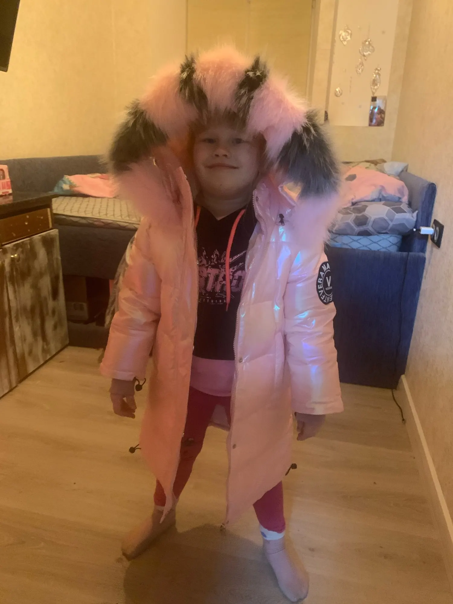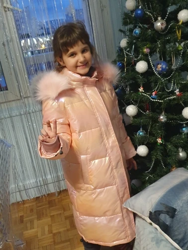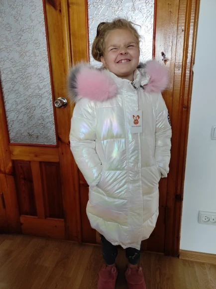 Очень долго шло пальто, целый месяц. Продавец отправлял заказ только неделю. Само пальто понравилось, по размеру подошло. На рост 128 взяли размер 9. Из недостатков - нет петельки, чтобы вешать пальто. Мех конечно не такой как на фото. Сам пуховик выглядит тонковатым, насколько тёплый проверим на улице.
