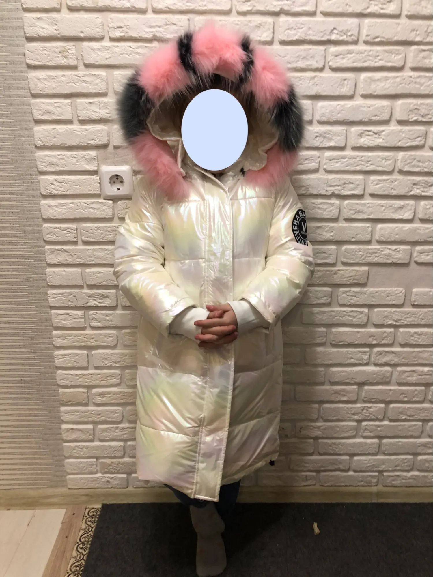 Куртка, а точнее пальто хорошего качества. На рост ребёнка 140см взяла маркировку 160. Подошло отлично и на следующий год хватит. Рукава регулируются утяжкой . Мех искусственный, как и заявлено, пушистый и красивый. Насколько теплый пуховик, ещё не проверяли. Ребёнок в восторге. Спасибо продавцу. Рекомендую! Приятный бонус-милая резиночка для волос.