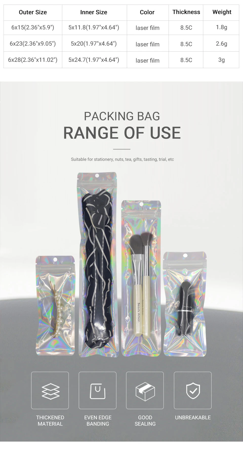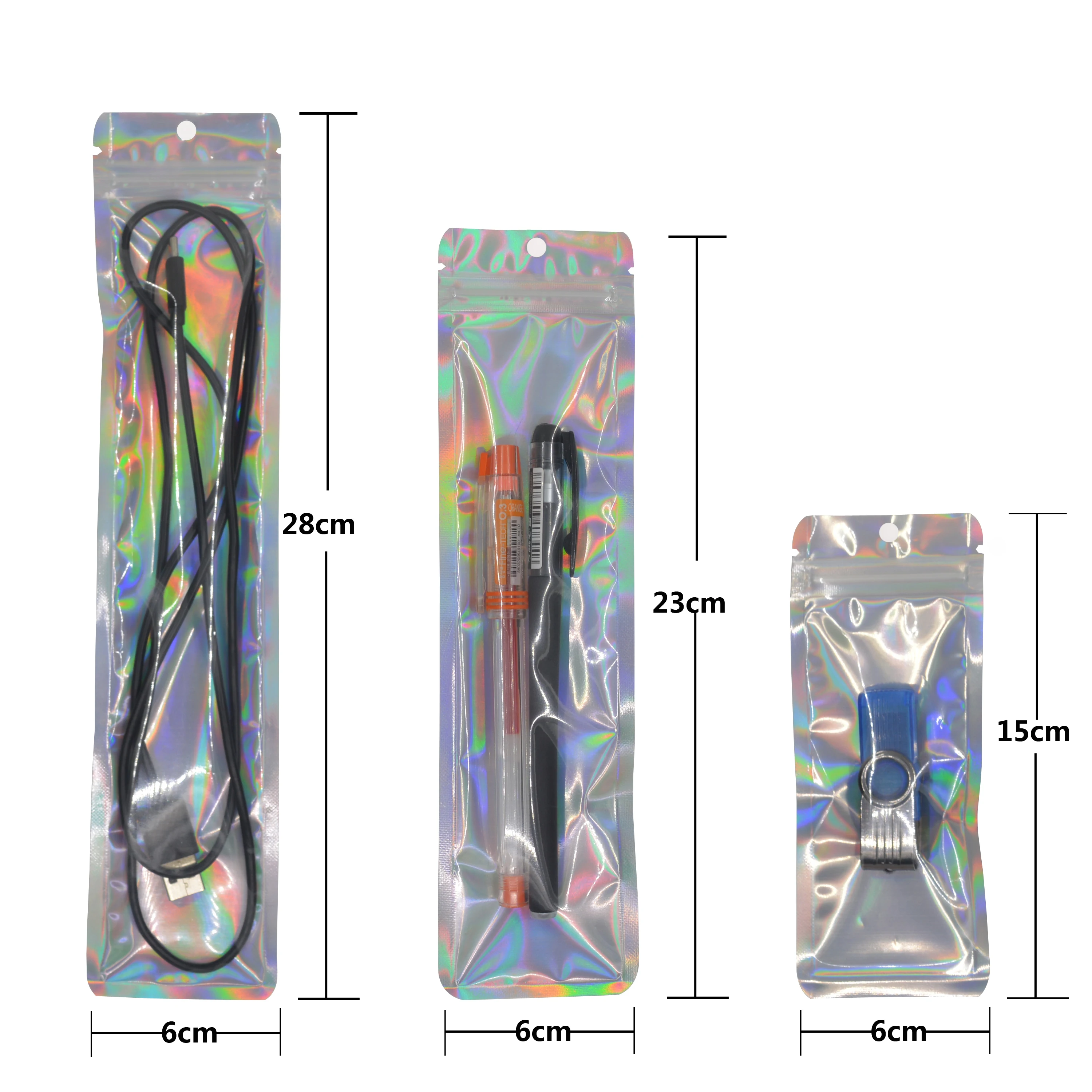 100 шт. голограмма, алюминиевая фольга и прозрачные пакеты с замком-молнией, длинный пластиковый чехол для часов, ручек, ювелирных изделий, косметических Usb-кабелей для передачи данных