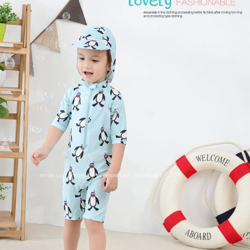 Купальник для мальчиков, с шапочкой, костюм для серфинга, купальный...