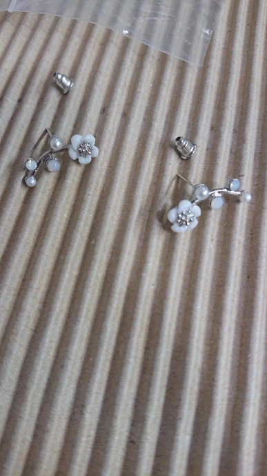 серьги-гвоздики миленькие, застёжка металлическая, но к сожалению пришли бракованные, лепесточек у цветочка отломан на фото видно. я думаю, что такие уже положили, а не во время транспортировки сломались, так как отломанных деталей в упаковке не было.