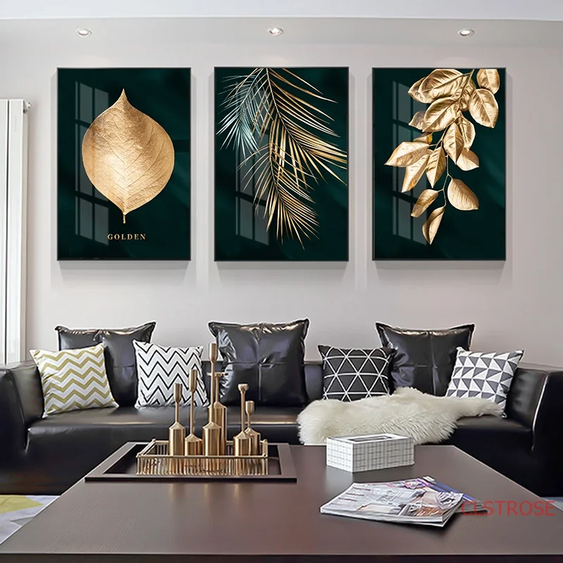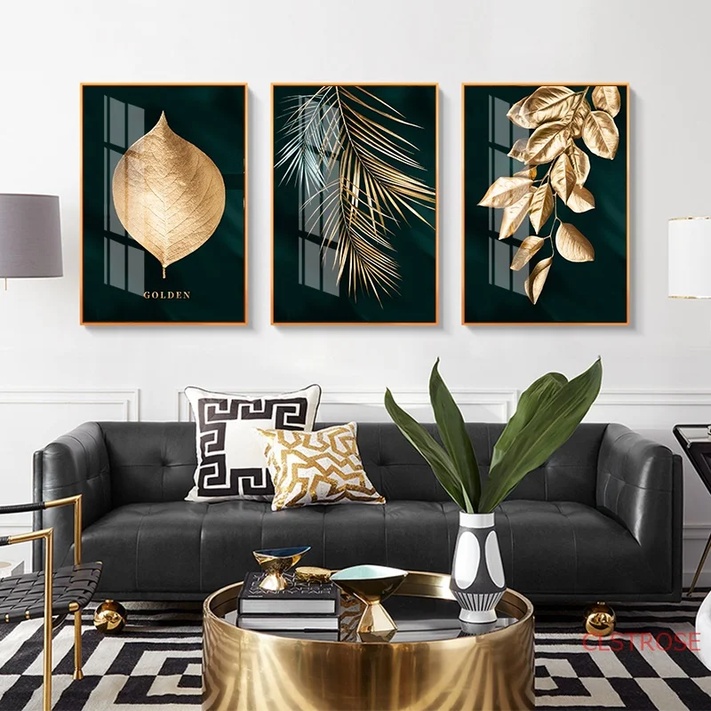 Скандинавский декор, холст с золотыми листьями, абстрактная живопись, настенный художественный плакат и печать, декоративные картины для гостиной, домашний декор