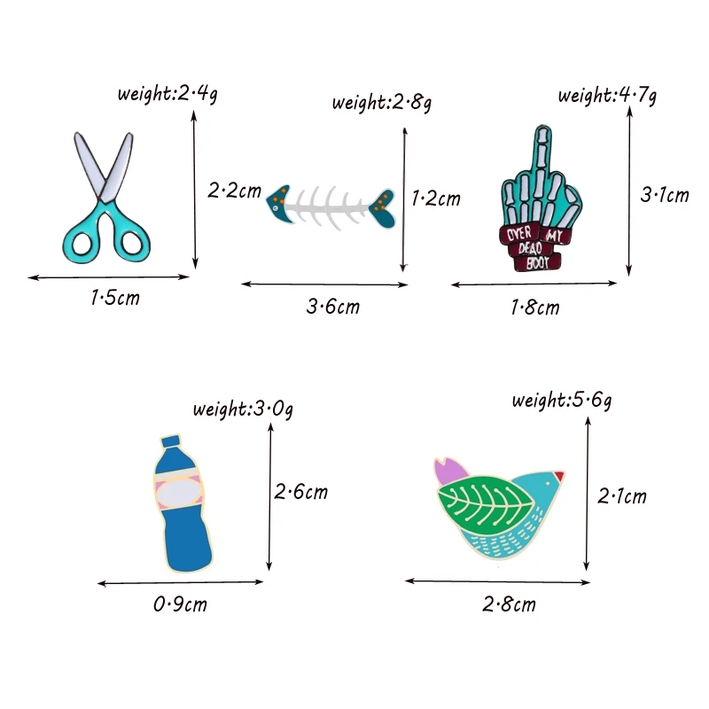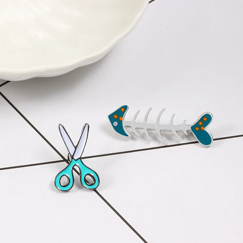 Креативные металлические эмалированные Броши ножницы рыбные кости бутылка жест петух синий Модный значок булавка для рубашки куртки нагрудные значки булавки