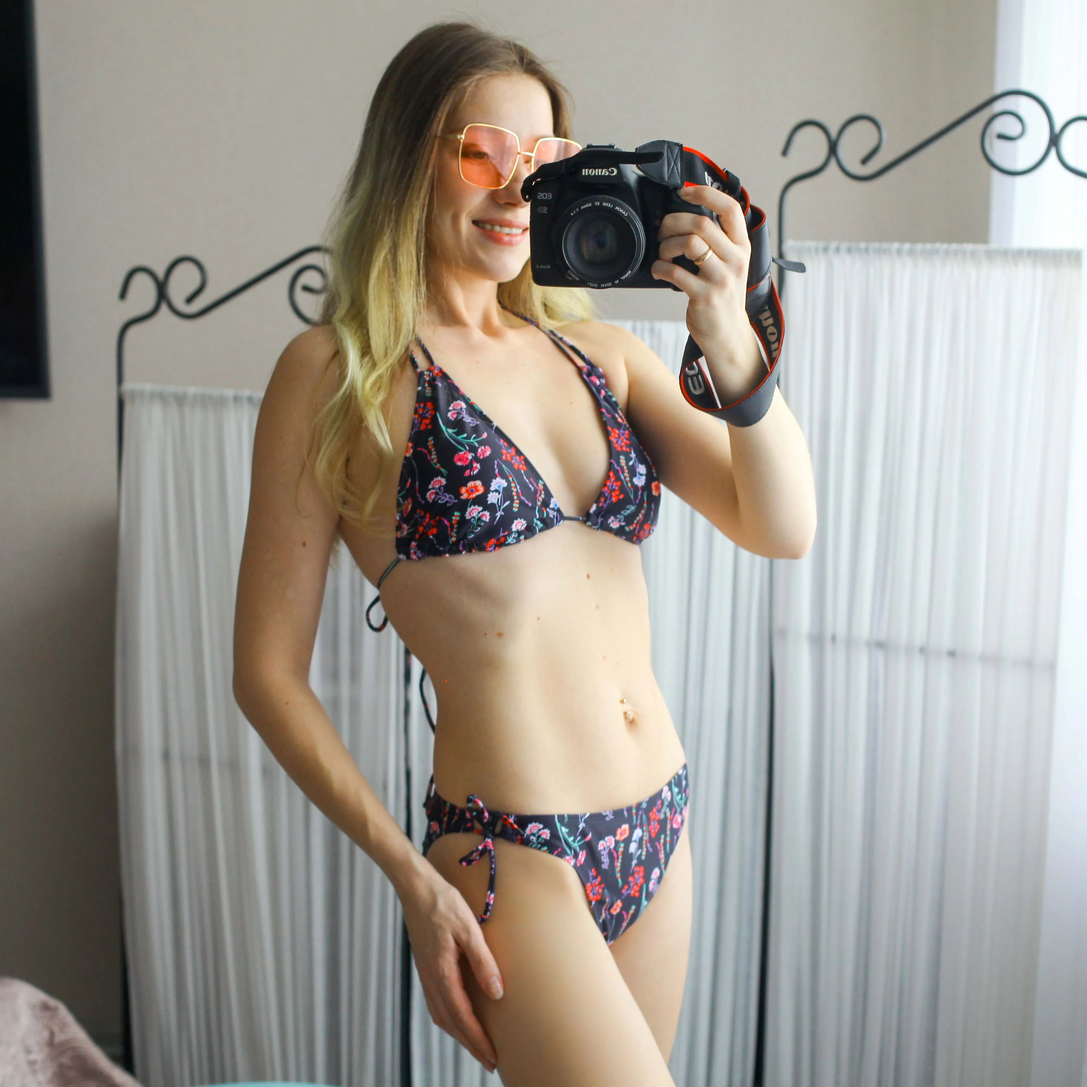 Доставка менее трех недель. Я выбрала маркировку М на параметры 85-68-88, рост 163 см - купальник подошел. Чашечки треугольные, есть съемные вставки. Бретели двойные, на завязках. Также одну можно опустить спереди, она будет соединять чашечки сверху, а вторую можно оставить вокруг шеи. По объему также завязки. Трусики средней посадки. Классической закрытой формы. По бокам регулируемые завязки. Подкладка белая. Качество супер. Никаких дефектов. Мне нравится эта модель. Такие всегда актуальные. Комфортная посадка и приятная расцветка.
