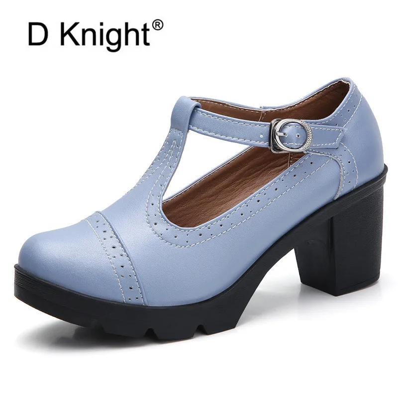 Туфли-лодочки, размер 34-43, женская обувь, кожаные туфли-оксфорды с Т-образным ремешком и пряжкой, женские туфли-лодочки Мэри Джейн на среднем каблуке и платформе в стиле ретро