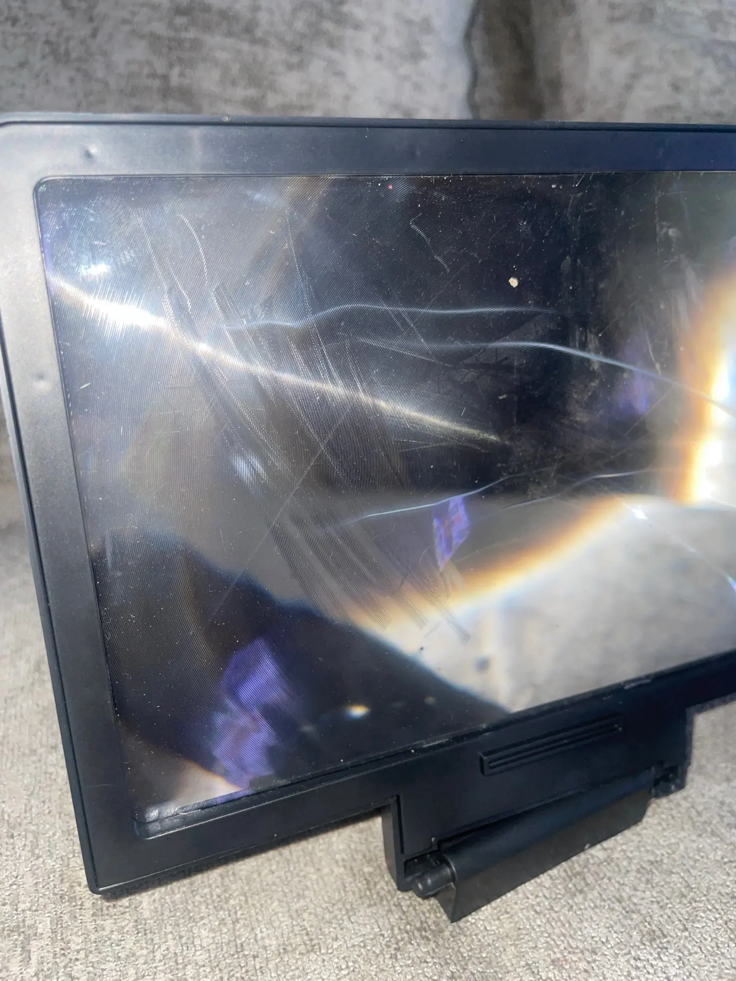 Характеристики:Материал: АБС-пластикЦвет: черныйРазмер: 18,4*14,7*1,7 смПосылка включает в себя:1 * Мобильный телефон видео экран Лупа