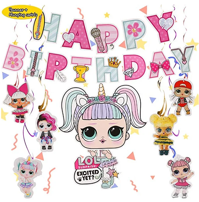 Куклы LOL surprise, тематические украшения для дня рождения, праздничная чашка, тарелка, ложка, торт, воздушный шар, игрушки для девочек, подарки