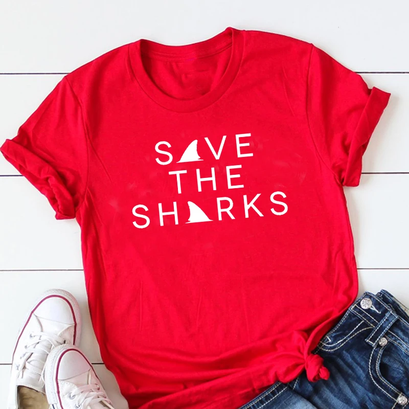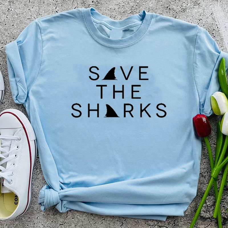 Женская хлопчатобумажная рубашка Save The Sharks, уличная футболка с надписью «Save The Ocean», синяя футболка с принтом «Keep Ocean», модные топы 90s